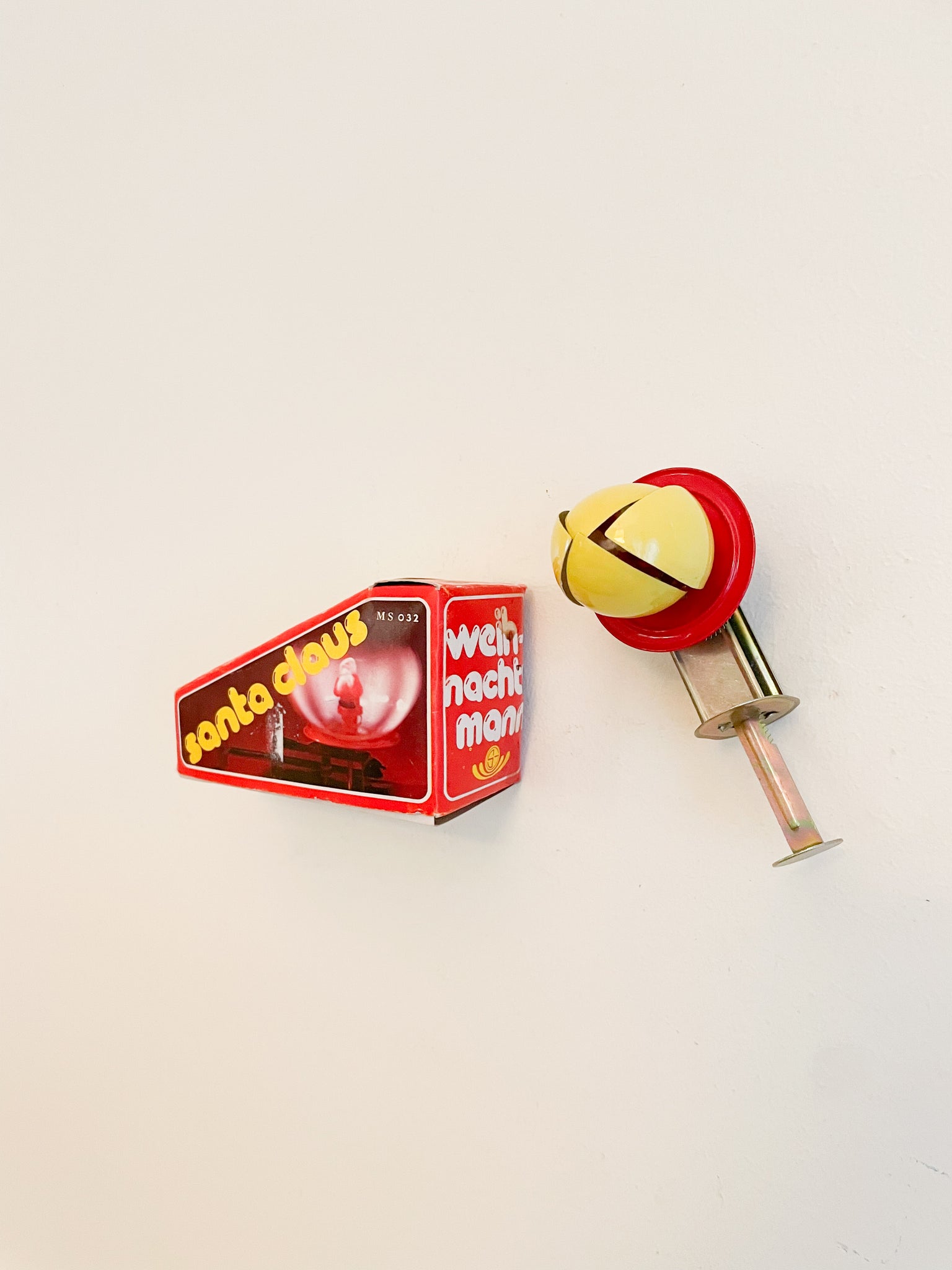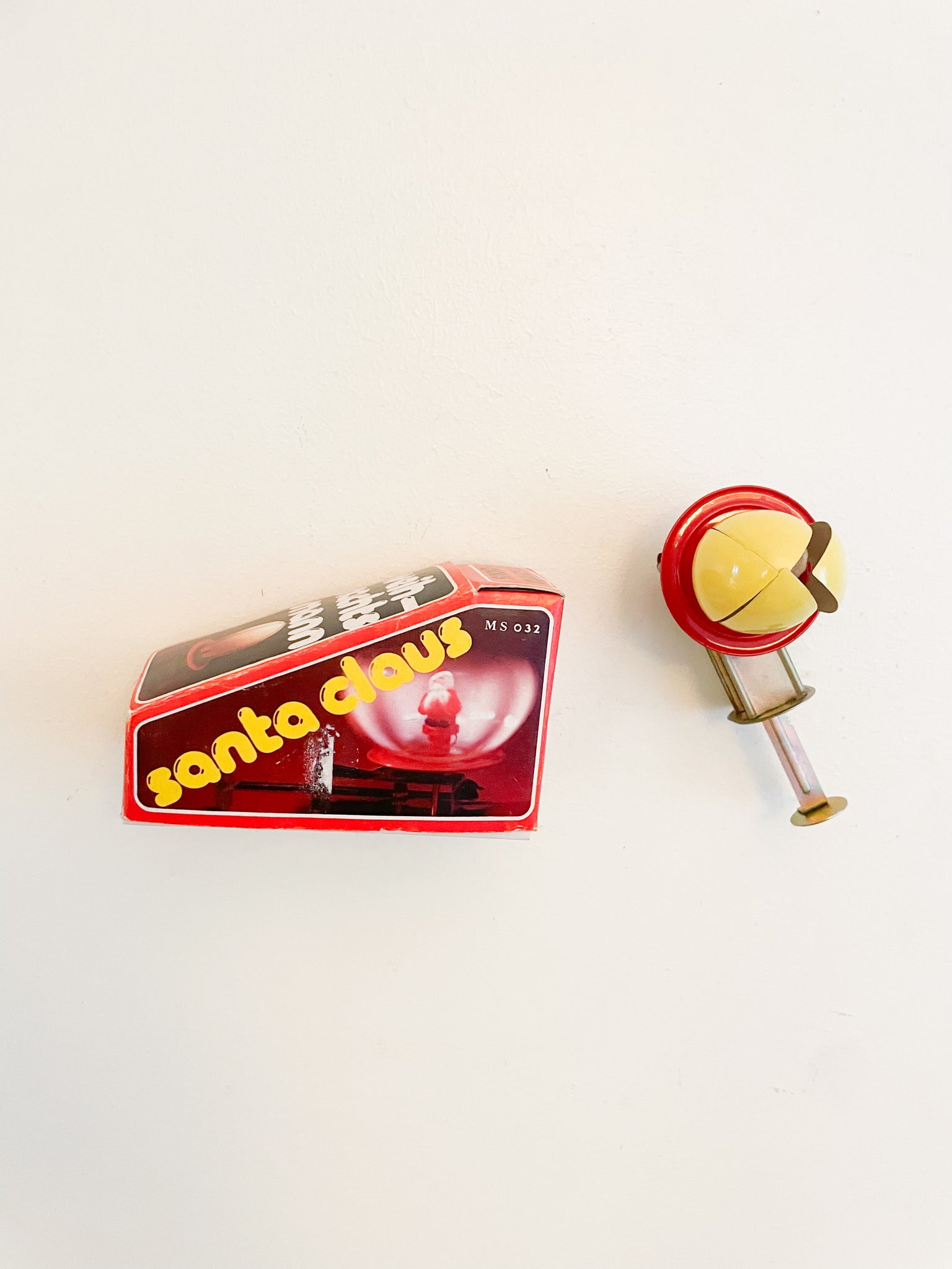 A vintage spinning Santa Claus metal toy in its original packaging! Endless fun for the whole family!
