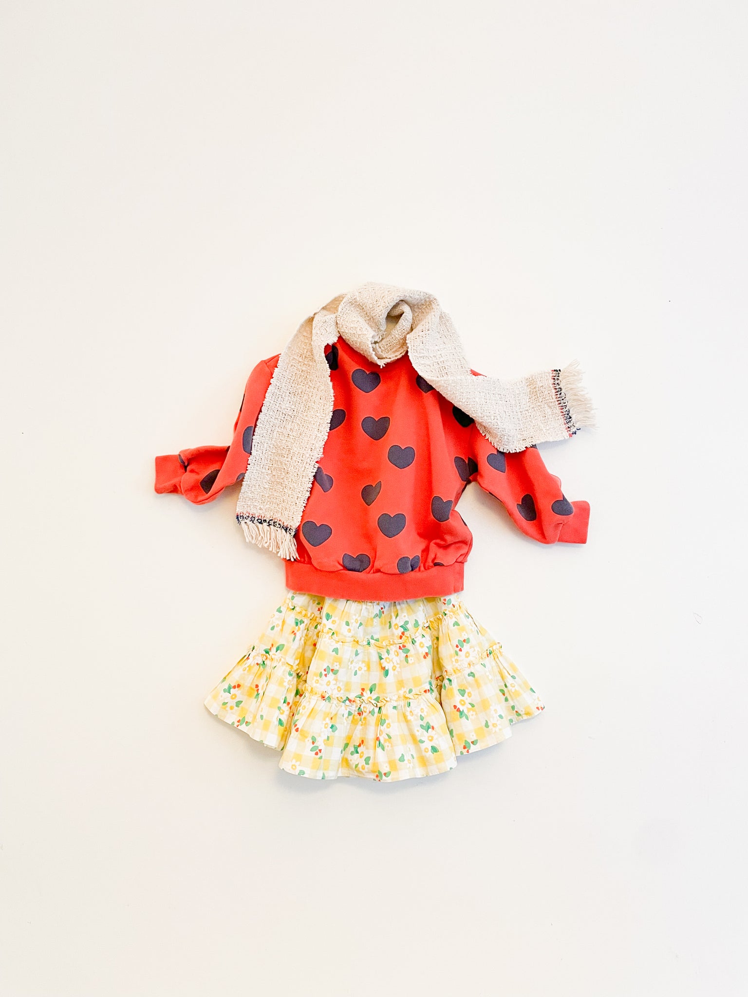 100% cotton perfect picnic skirt with pretty vichy-floral-heart print.