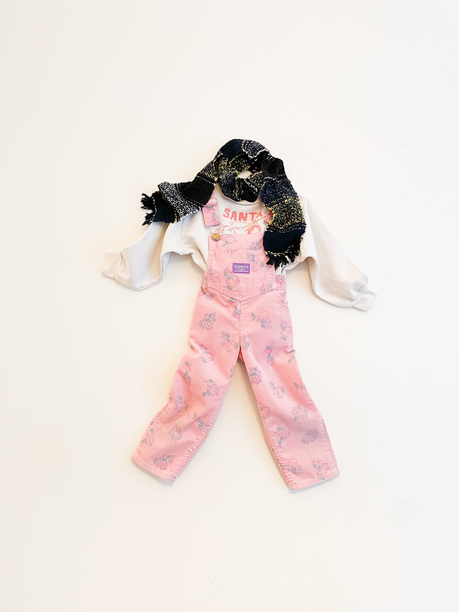 Brand: Oshkosh B’gosh / Size: 4 years* / Measurements: Chest: 17 cm, waist: 25.5 cm, length: 83 cm, inseam: 37 cm / Condition: Very good / Notes: Overall fading and light wear, otherwise amazing vintage condition.
