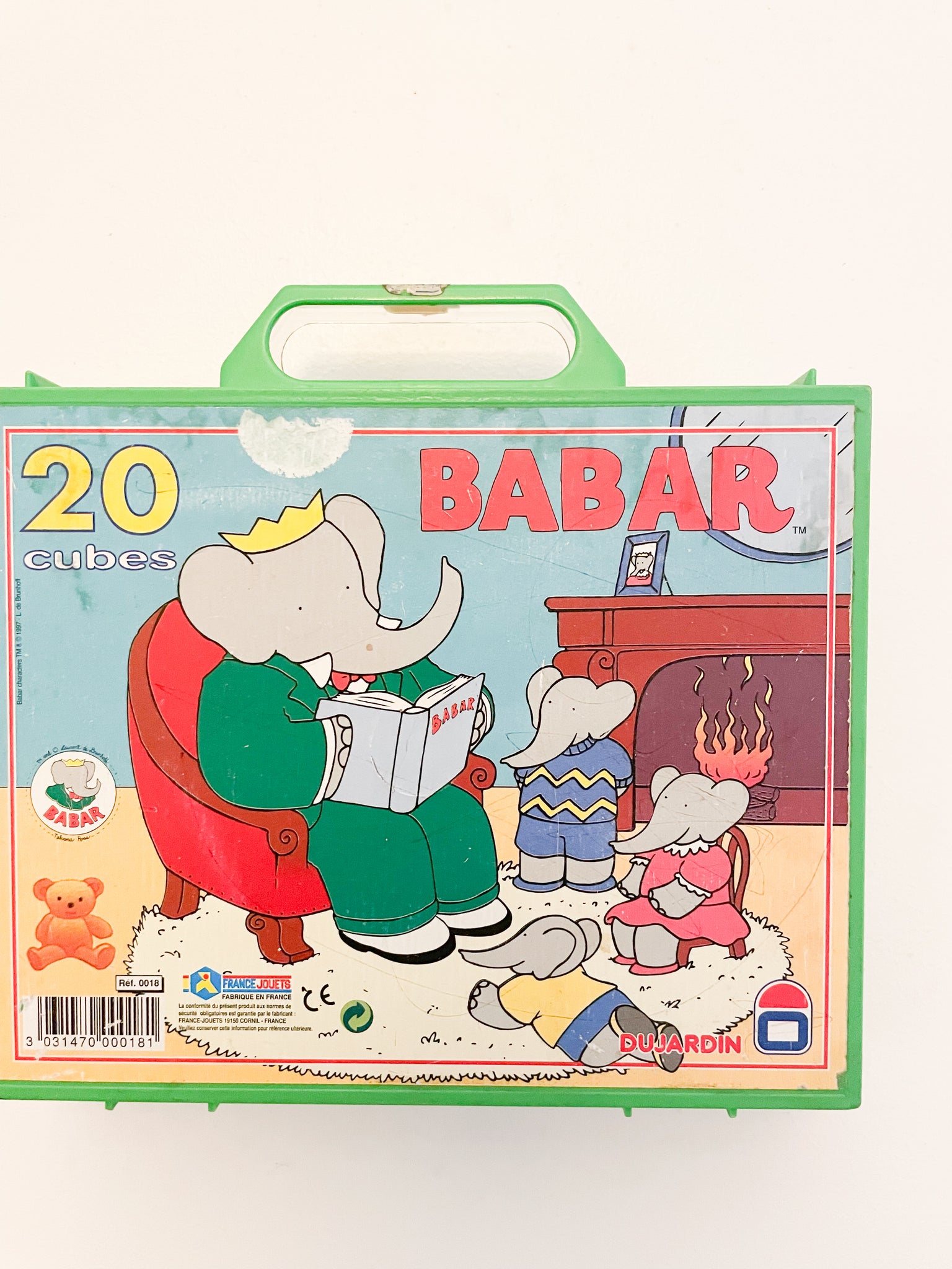 A delightful 1997 Babar cube puzzle comprised of 20 cubes and 6 puzzles.